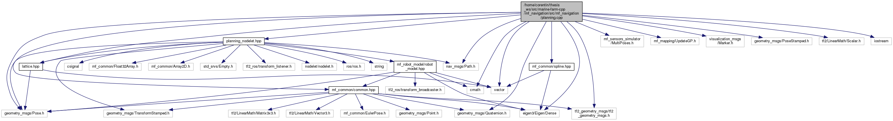 #include "planning_nodelet.hpp"#include "lattice.hpp"#include "mf_common/common.hpp"#include "mf_common/spline.hpp"#include "mf_sensors_simulator/MultiPoses.h"#include "mf_mapping/UpdateGP.h"#include <visualization_msgs/Marker.h>#include <nav_msgs/Path.h>#include <geometry_msgs/Quaternion.h>#include <geometry_msgs/Pose.h>#include <geometry_msgs/PoseStamped.h>#include <tf2/LinearMath/Scalar.h>#include <tf2_geometry_msgs/tf2_geometry_msgs.h>#include <eigen3/Eigen/Dense>#include <cmath>#include <vector>#include <iostream>